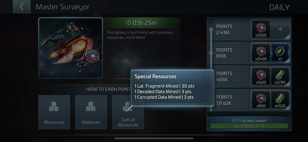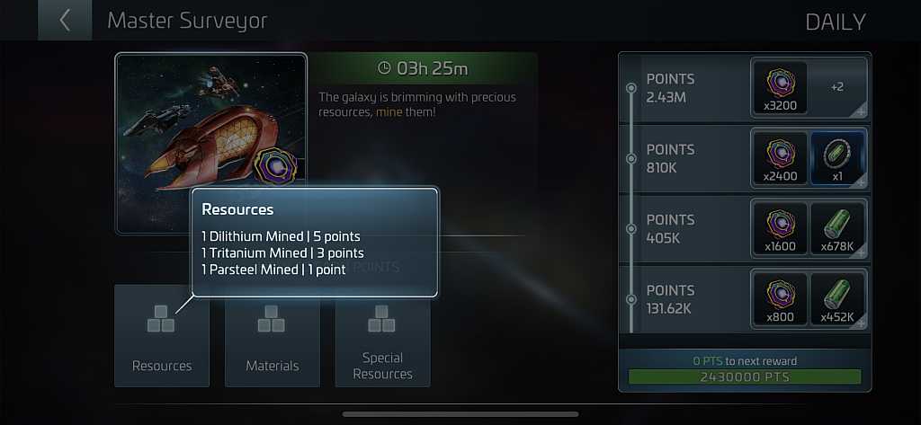 A variation of Latinum Rush and other mining events, Master Surveyor also gives points for mining data. The strategy for this one is pretty simple. If you’re going to be sitting and paying attention, mine data. If not, get your D’Vor on the fastest node you can.